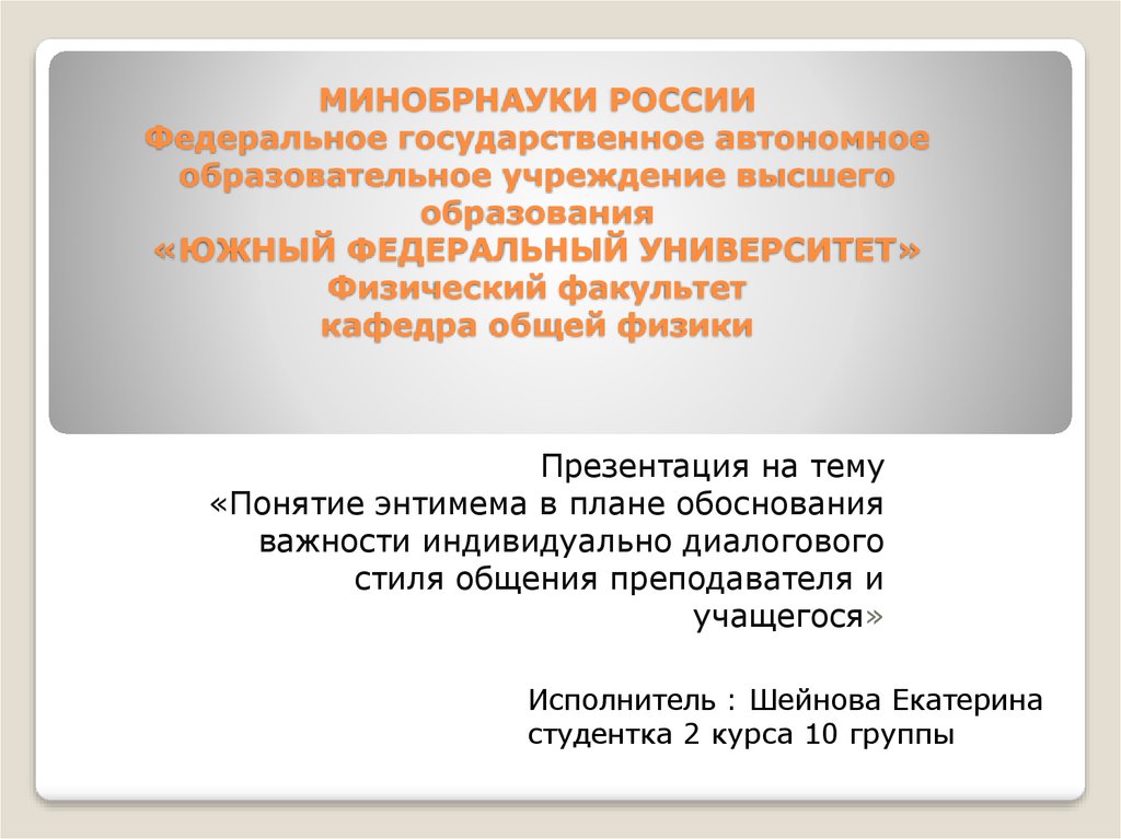 1. МИНОБРНАУКИ РОССИИ Федеральное государственное автономное образовательное учреждение высшего образования «ЮЖНЫЙ ФЕДЕРАЛЬНЫЙ