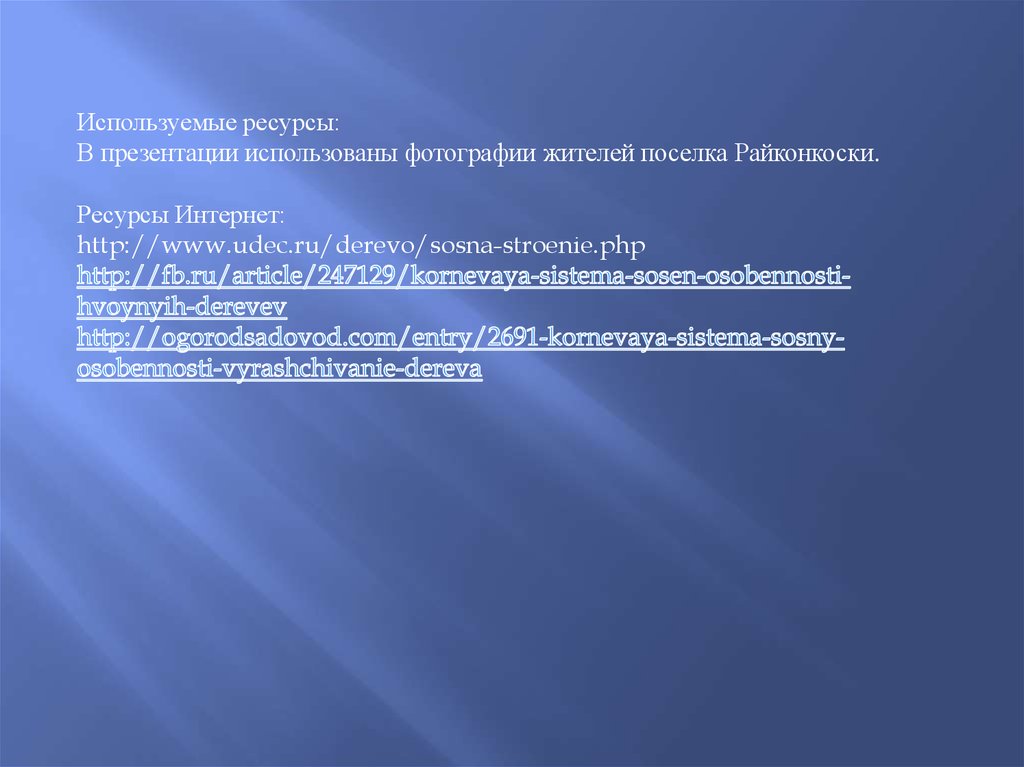 Используемые ресурсы:В презентации использованы фотографии жителей поселка Райконкоски.
