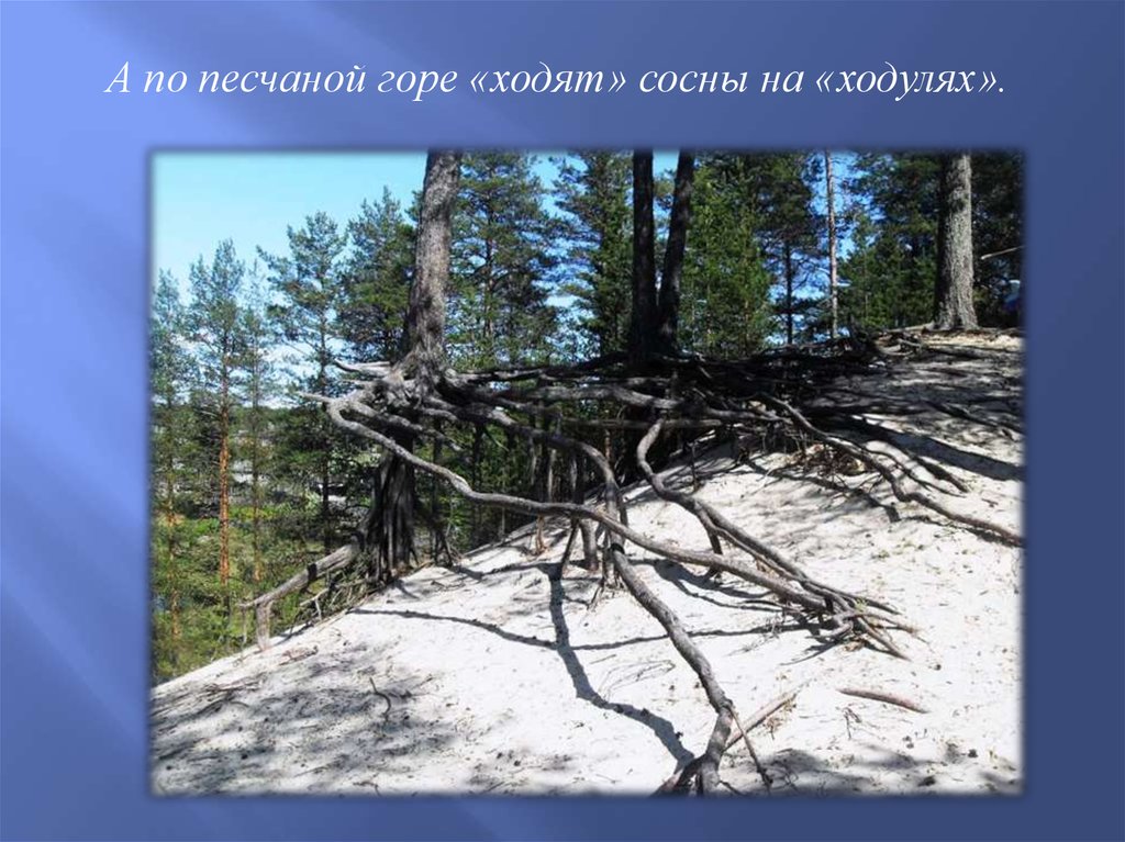 А по песчаной горе «ходят» сосны на «ходулях».5.