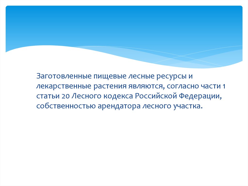 Заготовленные пищевые лесные ресурсы илекарственные растения являются, согласно части 1