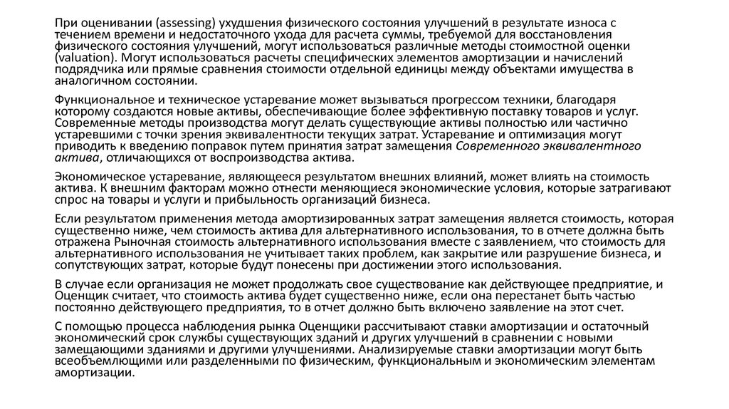 При оценивании (assessing) ухудшения физического состояния улучшений в результате износа стечением времени и недостаточного ухода для расчета суммы, требуемой для восстановления