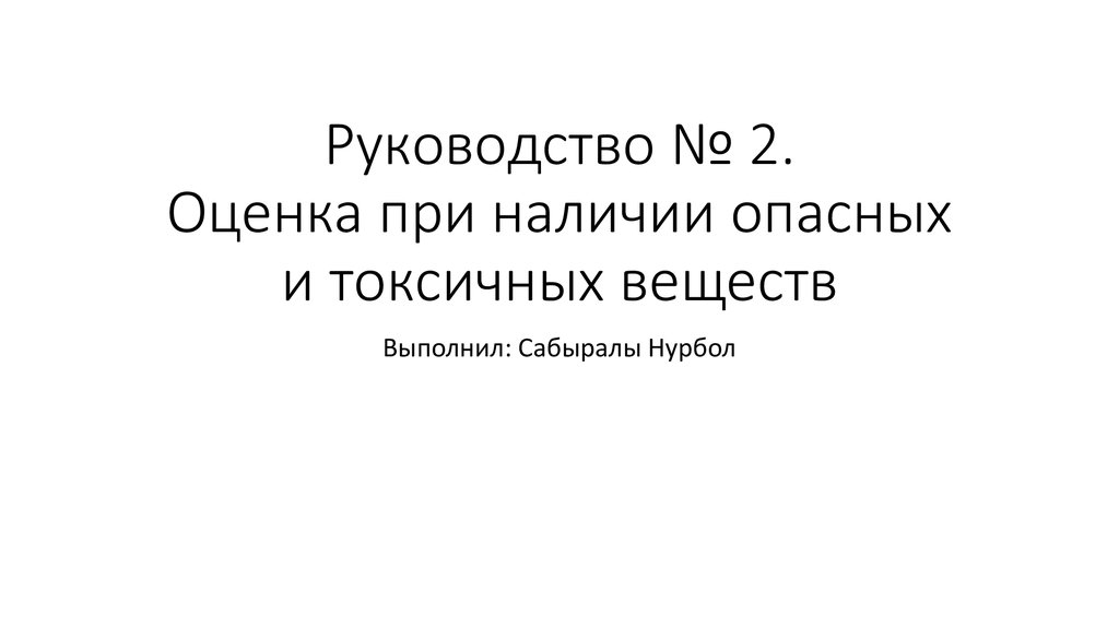 Выполнил: Сабыралы Нурбол2. Руководство по применению и исполнению № 7.2 «Оценка при наличии опасных и токсичных веществ».