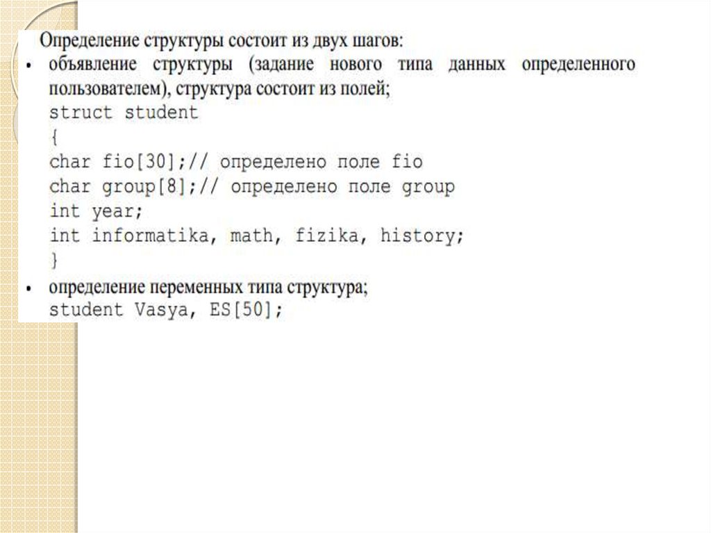 Возможно неполное объявление структуры, имеющееследующее формальное описание: