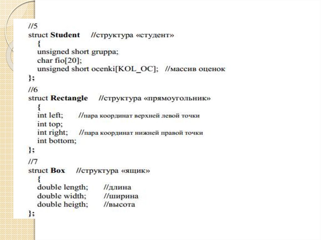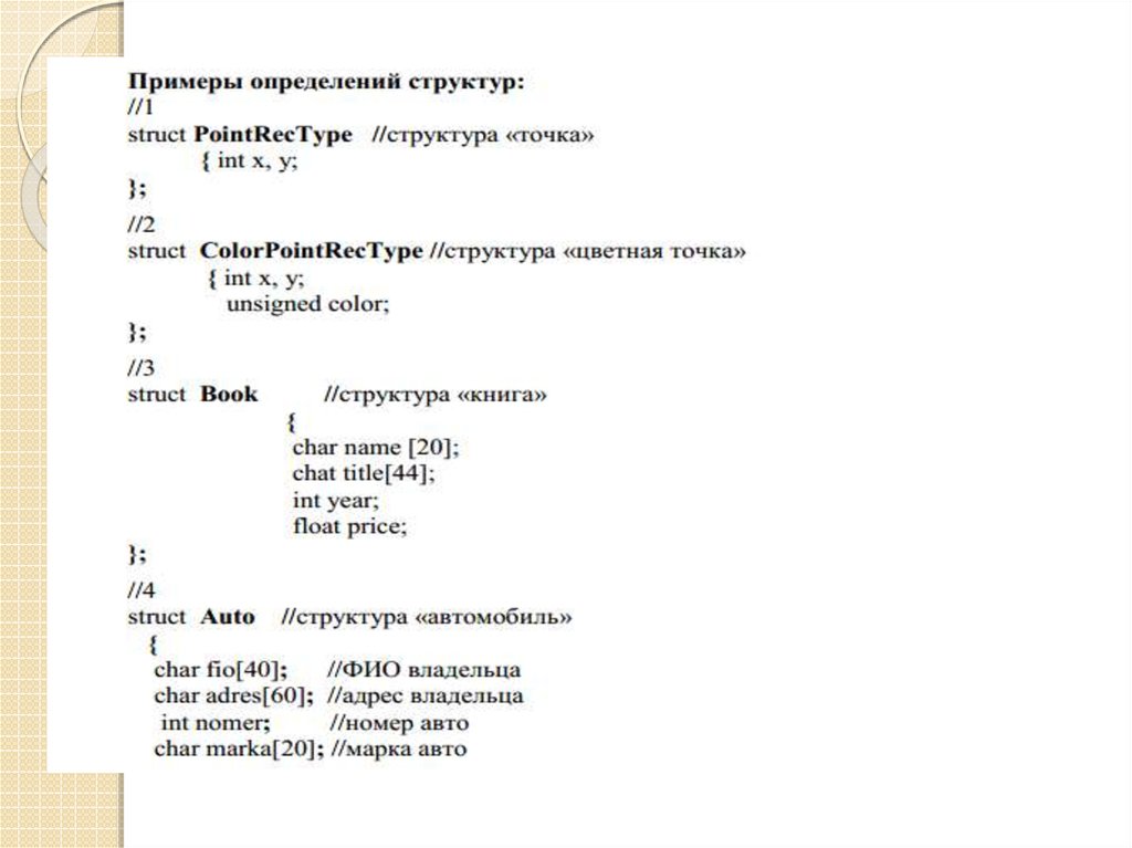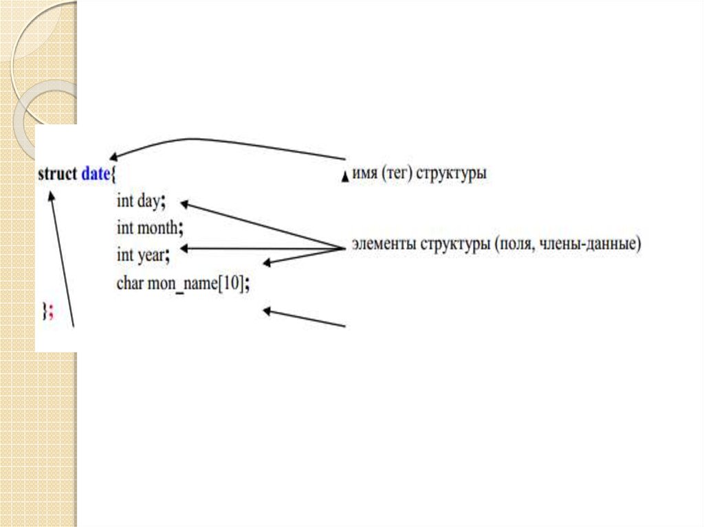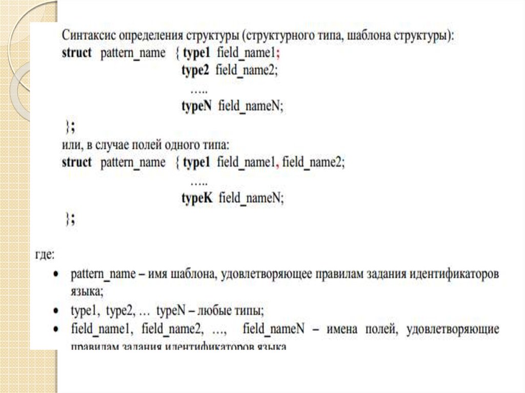 Объявление структурыСтруктуры языка C++ представляют поименованную