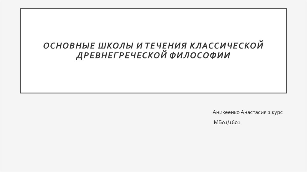 ОСНОВНЫЕ ШКОЛЫ И ТЕЧЕНИЯ КЛАССИЧЕСКОЙДРЕВНЕГРЕЧЕСКОЙ ФИЛОСОФИИ