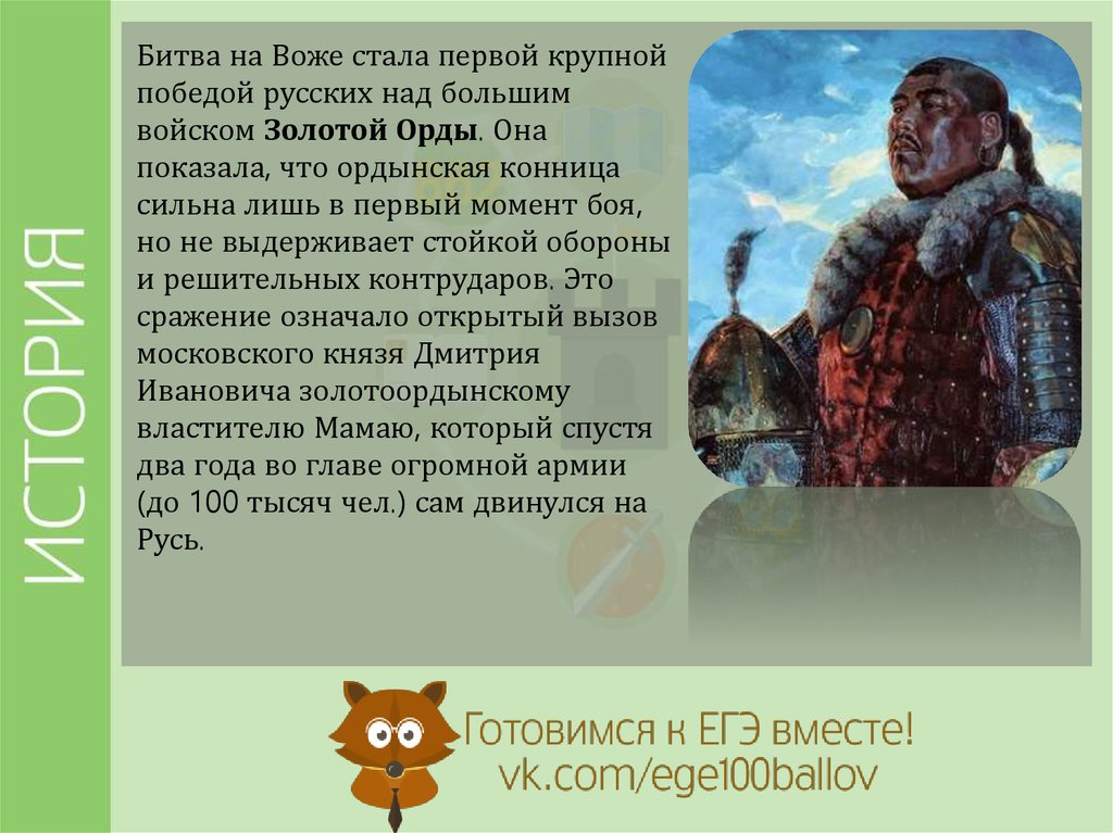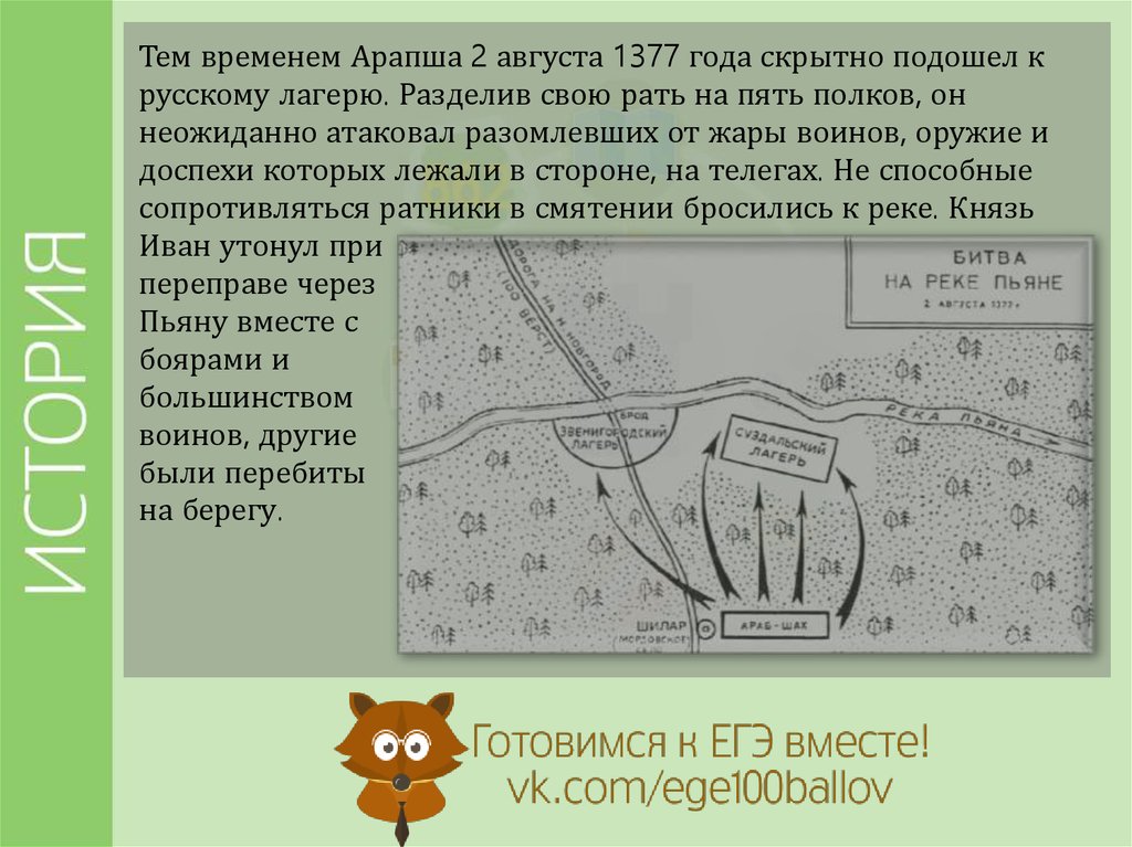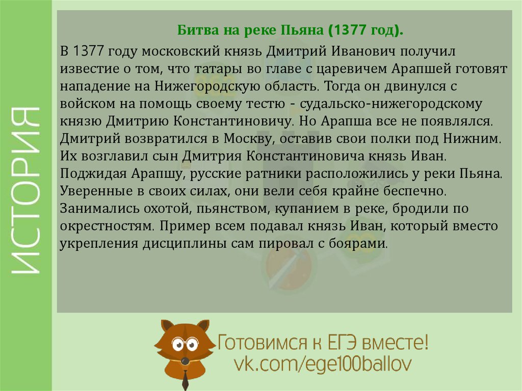 Битва на реке Пьяна (1377 год).В 1377 году московский князь Дмитрий Иванович получил