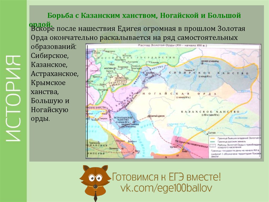 Борьба с Казанским ханством, Ногайской и Большойордой.