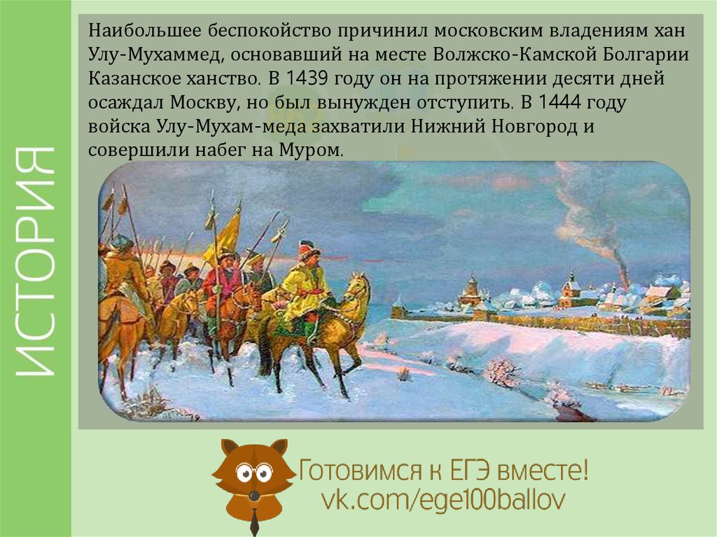 Наибольшее беспокойство причинил московским владениям ханУлу-Мухаммед, основавший на месте Волжско-Камской Болгарии