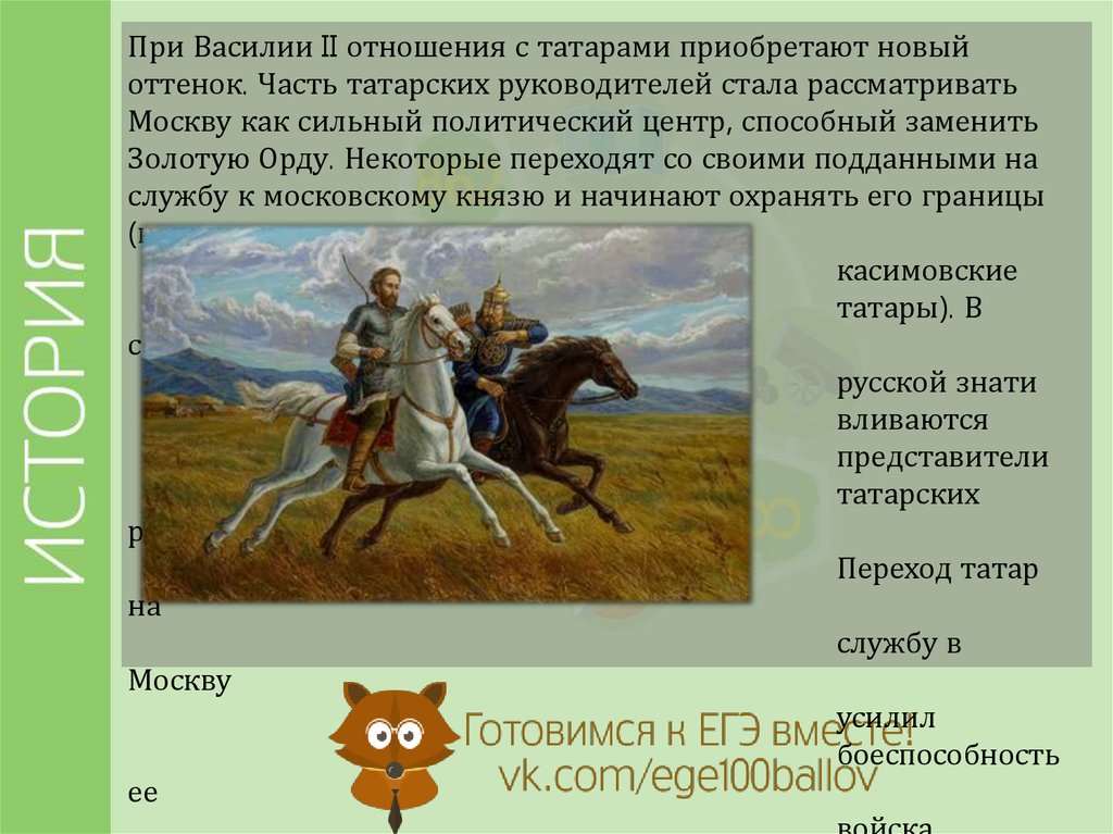 При Василии II отношения с татарами приобретают новыйоттенок. Часть татарских руководителей стала рассматривать