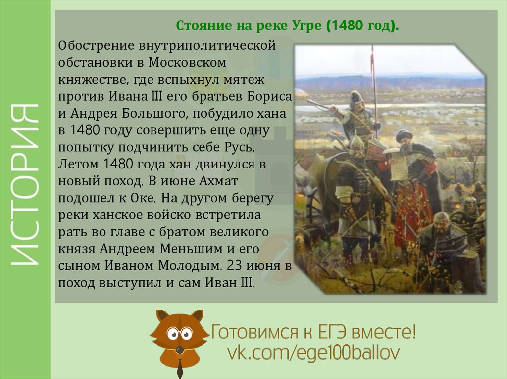 Стояние на реке Угре (1480 год).Обострение внутриполитической