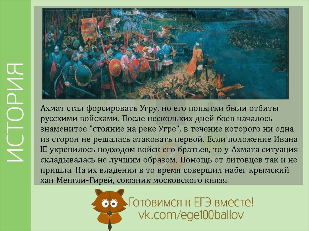 знаменитое "стояние на реке Угре", в течение которого ни одна