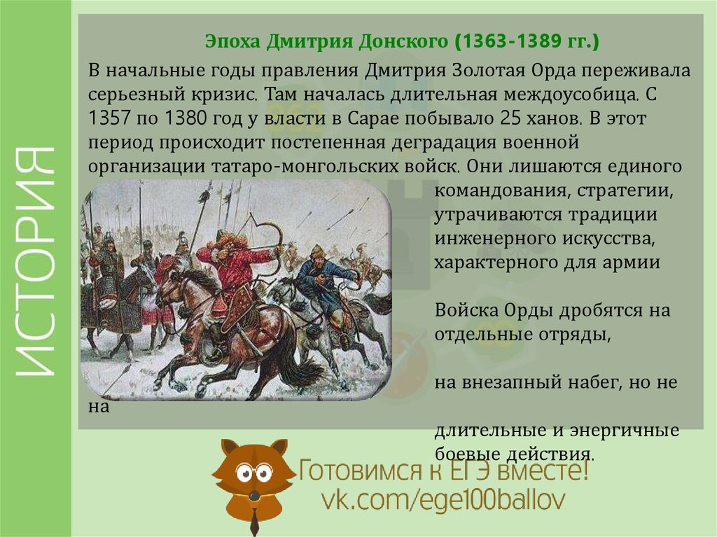 Эпоха Дмитрия Донского (1363-1389 гг.)В начальные годы правления Дмитрия Золотая Орда переживала