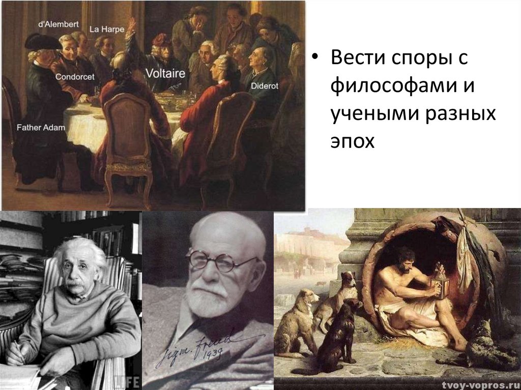 • Вести споры сфилософами и