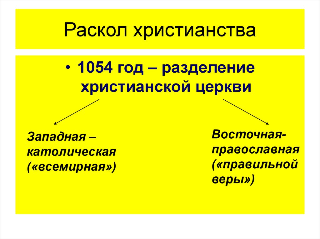 Раскол христианства• 1054 год – разделение