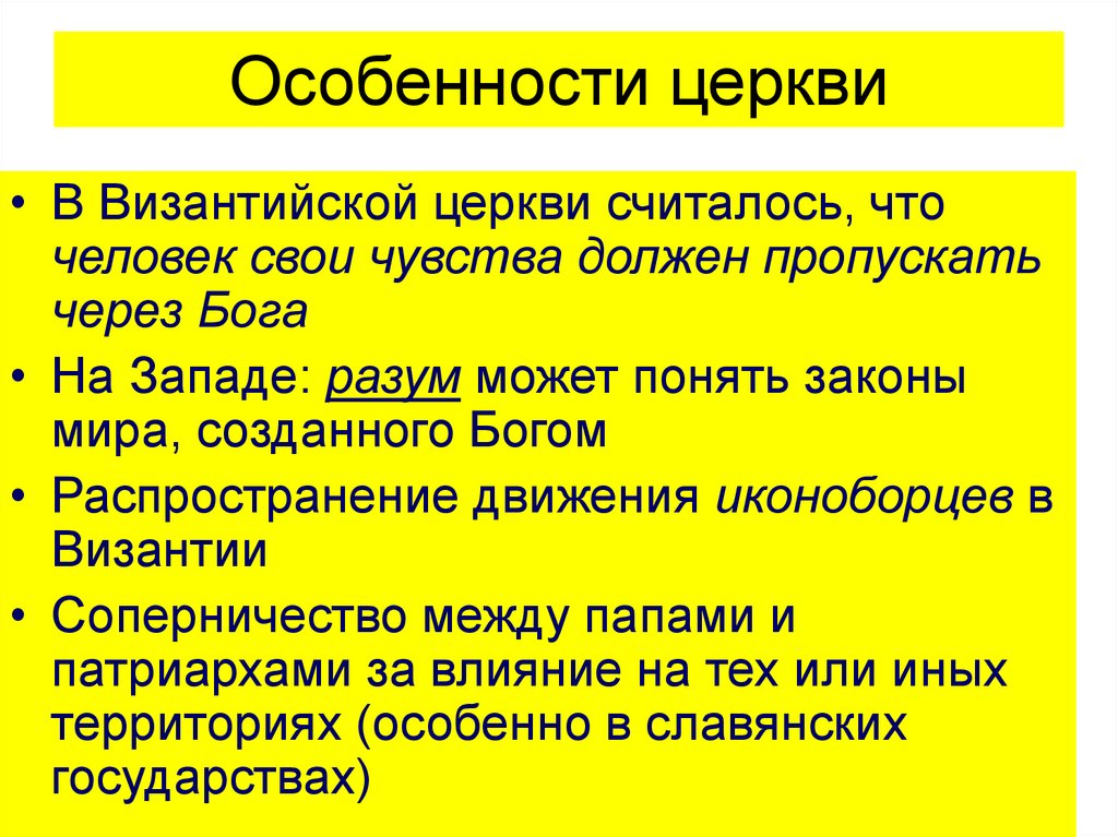 Особенности церкви• В Византийской церкви считалось, что