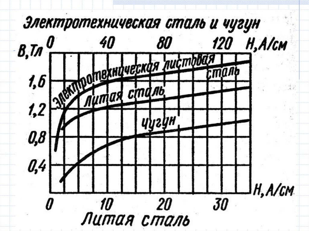 Процесс перемагничивания запаздывает поотношению к изменению тока в катушке.