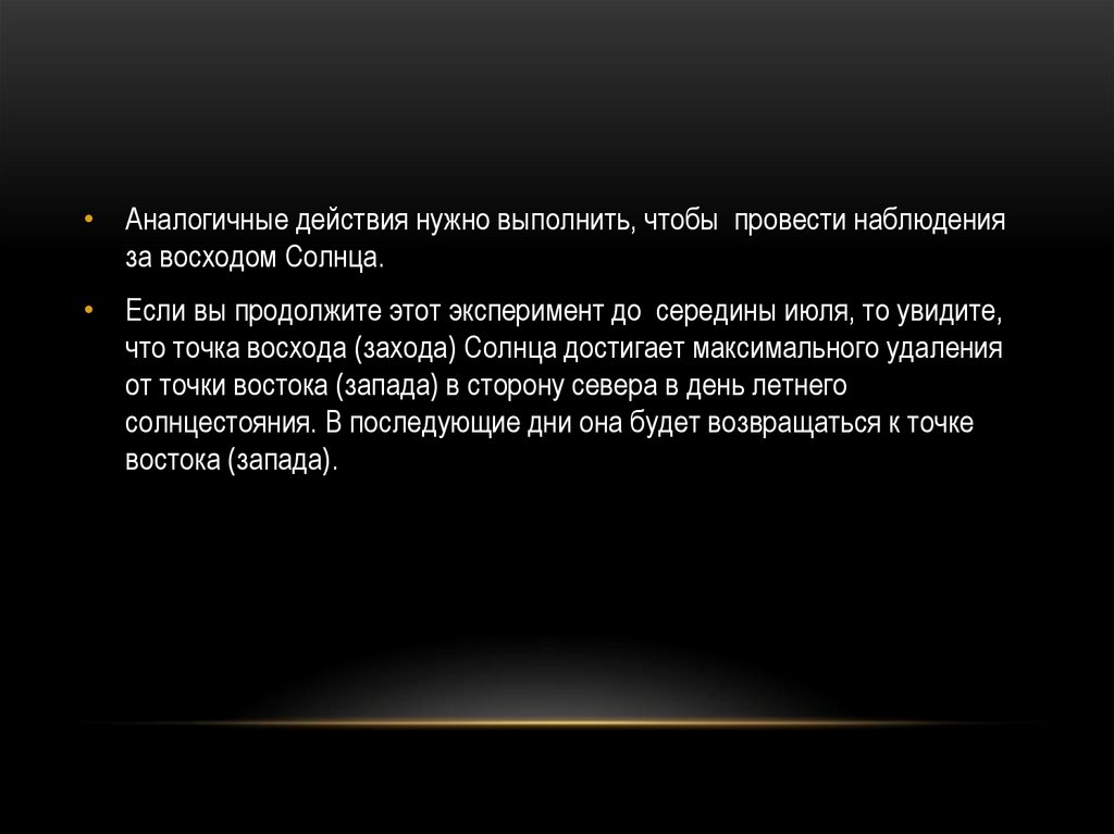 • Аналогичные действия нужно выполнить, чтобы провести наблюденияза восходом Солнца.