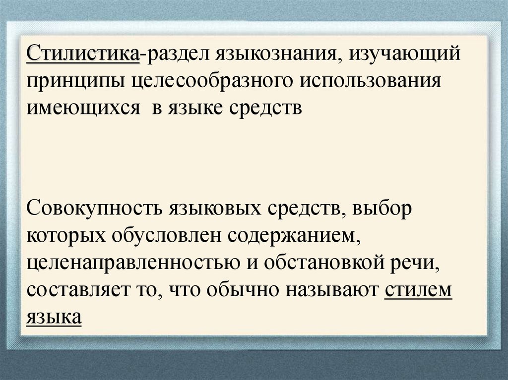 Стилистика-раздел языкознания, изучающийпринципы целесообразного использования