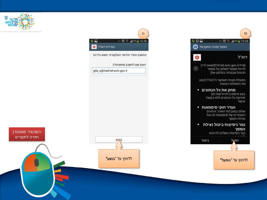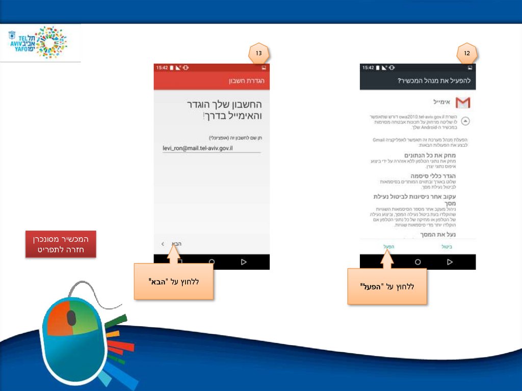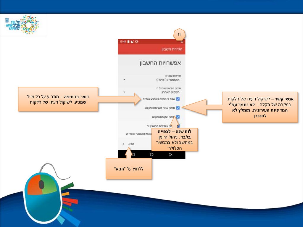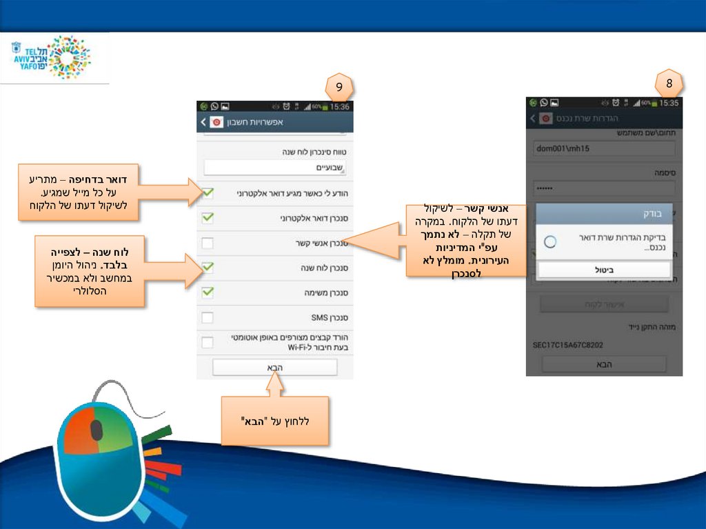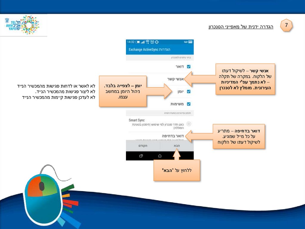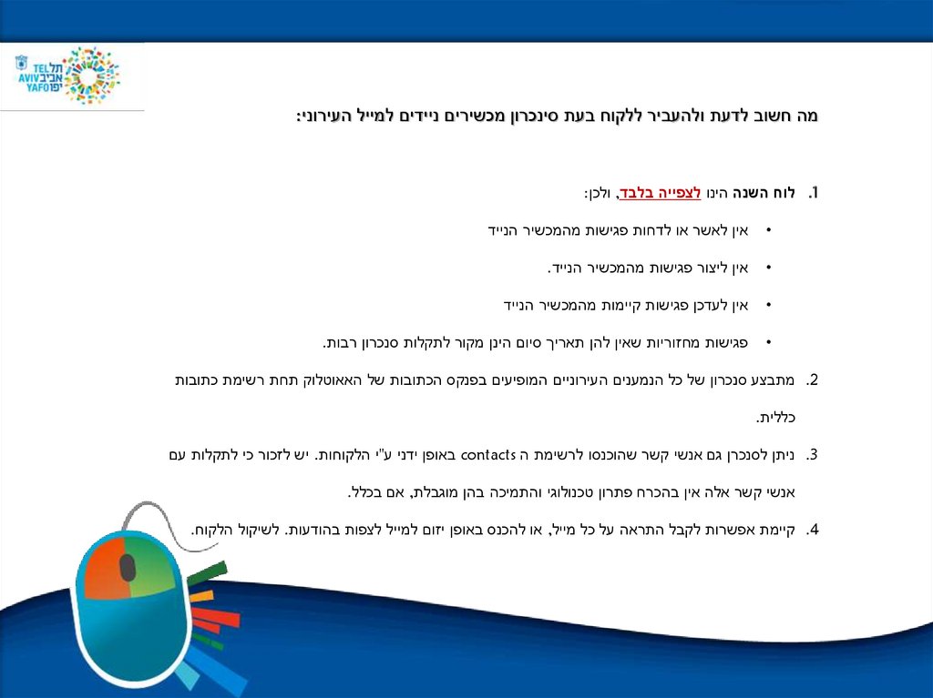 מה חשוב לדעת ולהעביר ללקוח בעת סינכרון מכשירים ניידים למייל העירוני: .1לוח השנה הינו לצפייה בלבד ,ולכן: