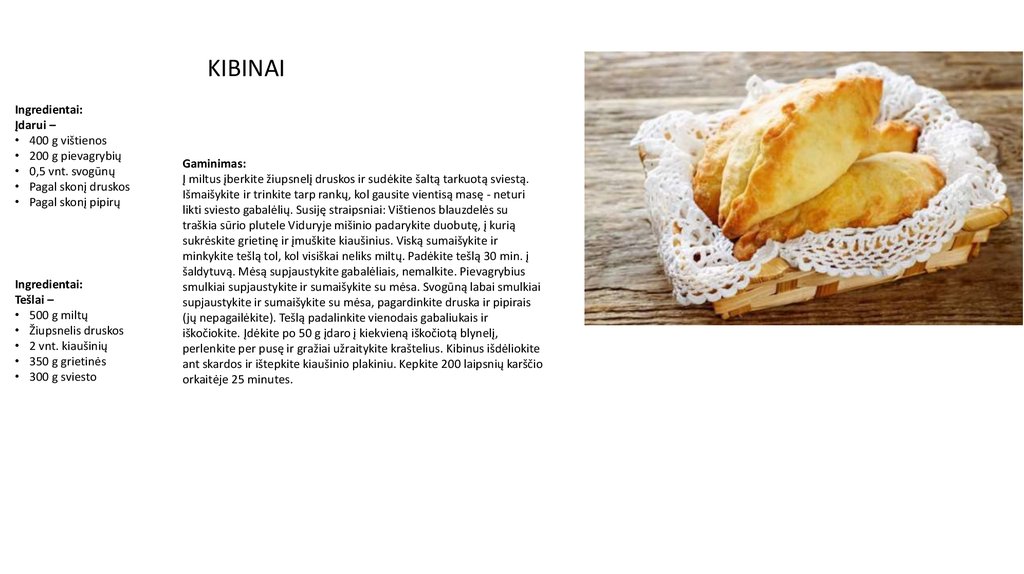 perlenkite per pusę ir gražiai užraitykite kraštelius. Kibinus išdėliokite