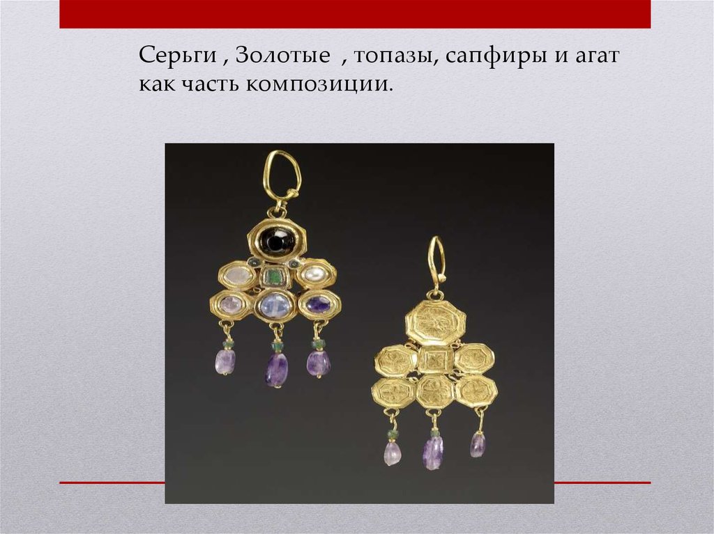 Серьги , Золотые , топазы, сапфиры и агаткак часть композиции.