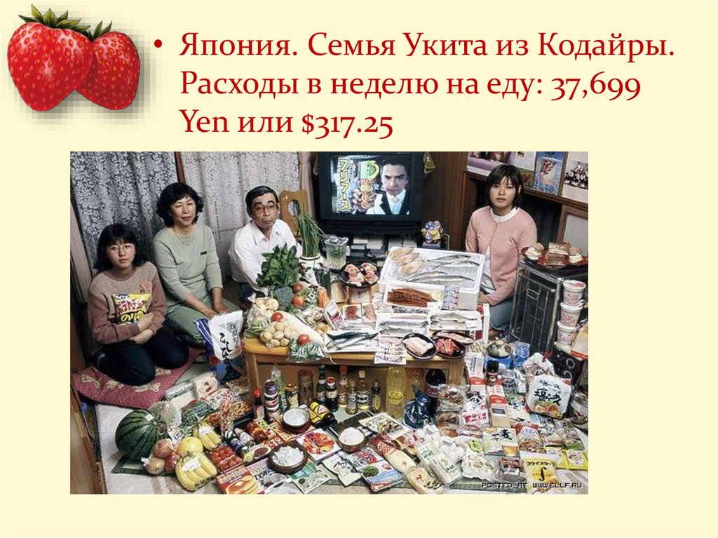 • Япония. Семья Укита из Кодайры.Расходы в неделю на еду: 37,699