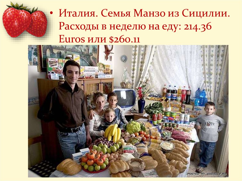 • Италия. Семья Манзо из Сицилии.Расходы в неделю на еду: 214.36