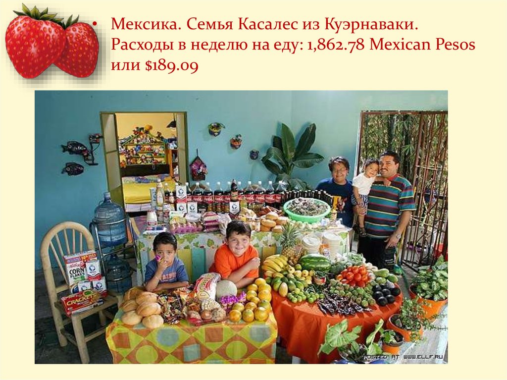 • Мексика. Семья Касалес из Куэрнаваки.Расходы в неделю на еду: 1,862.78 Mexican Pesos