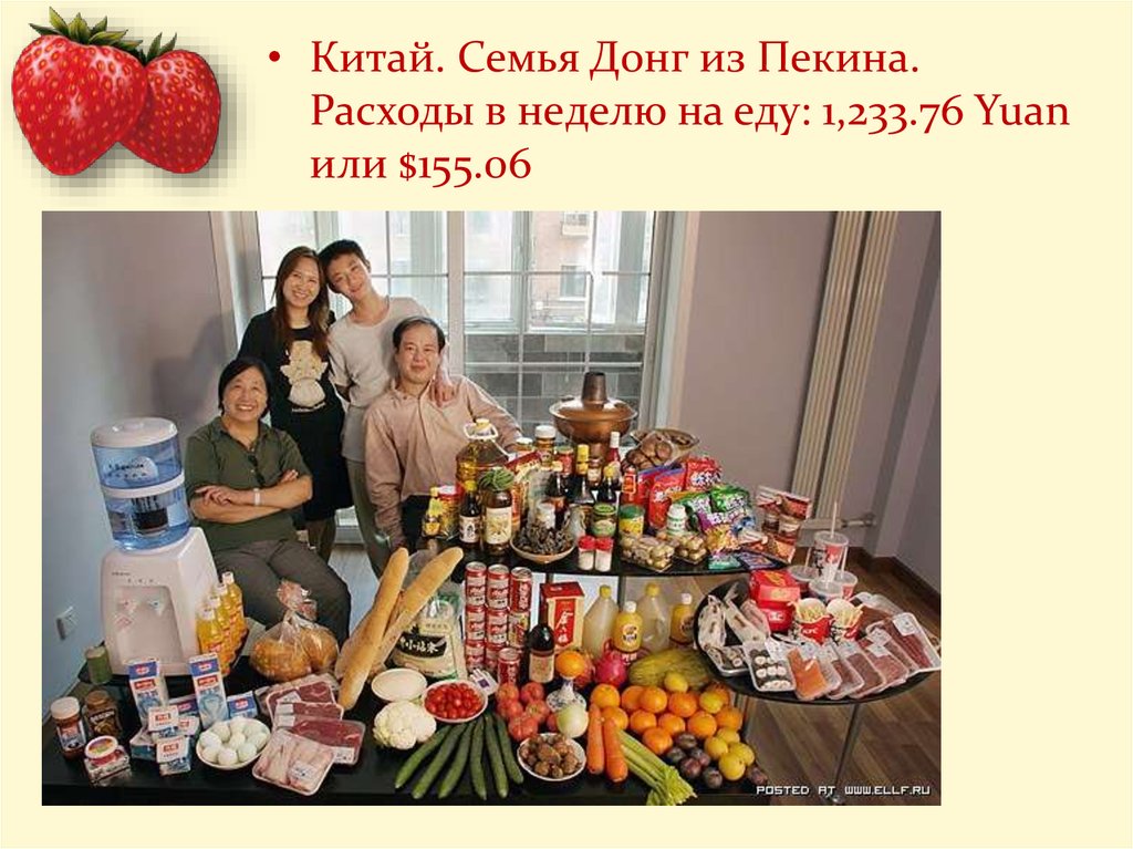 • Китай. Семья Донг из Пекина.Расходы в неделю на еду: 1,233.76 Yuan