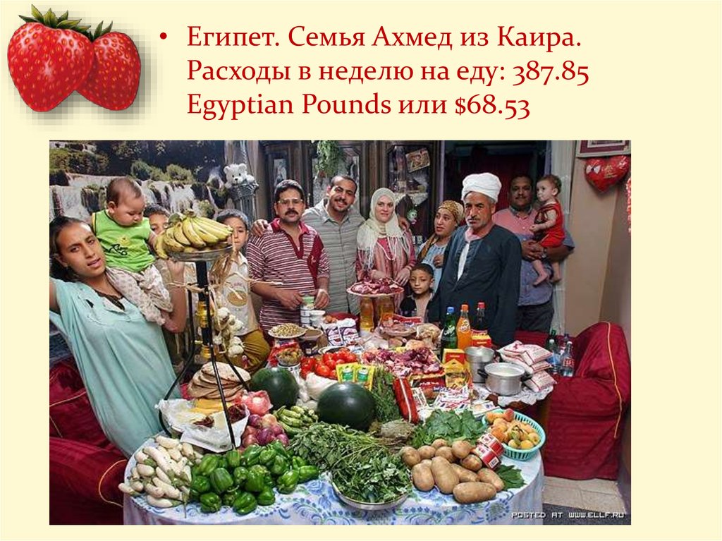 • Египет. Семья Ахмед из Каира.Расходы в неделю на еду: 387.85
