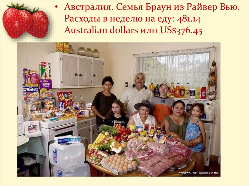 • Австралия. Семья Браун из Райвер Вью.Расходы в неделю на еду: 481.14