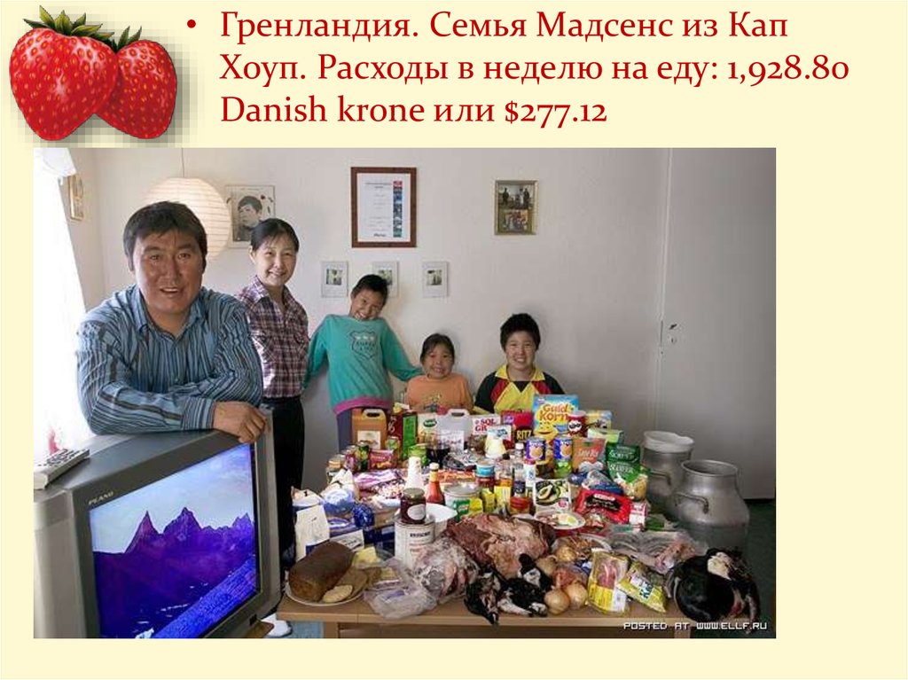 • Гренландия. Семья Мадсенс из КапХоуп. Расходы в неделю на еду: 1,928.80