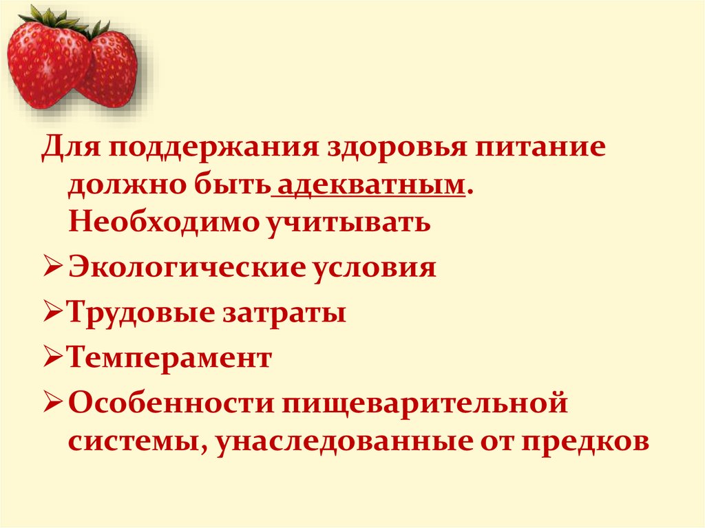 Для поддержания здоровья питаниедолжно быть адекватным.