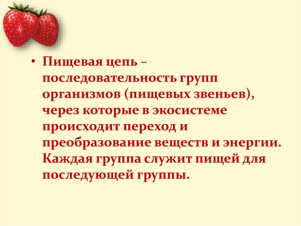 • Пищевая цепь –последовательность групп