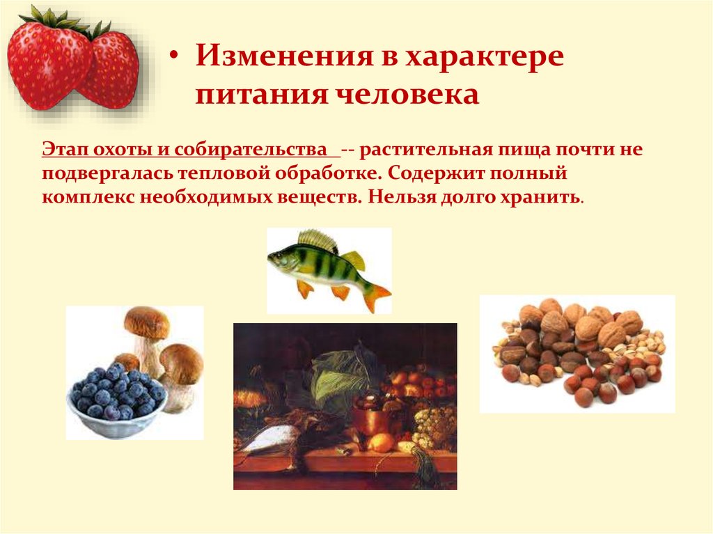 Этап охоты и собирательства -- растительная пища почти не