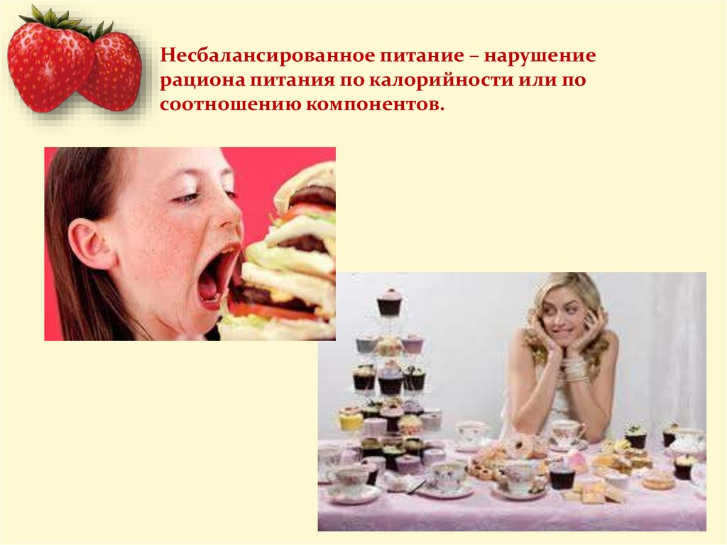Несбалансированное питание – нарушениерациона питания по калорийности или по