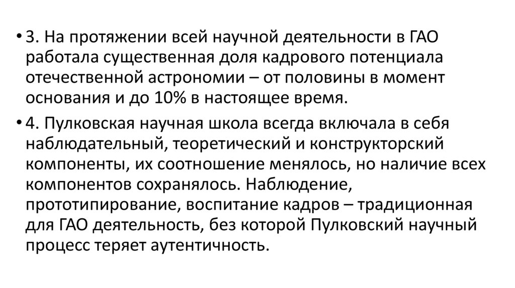 • 3. На протяжении всей научной деятельности в ГАОработала существенная доля кадрового потенциала