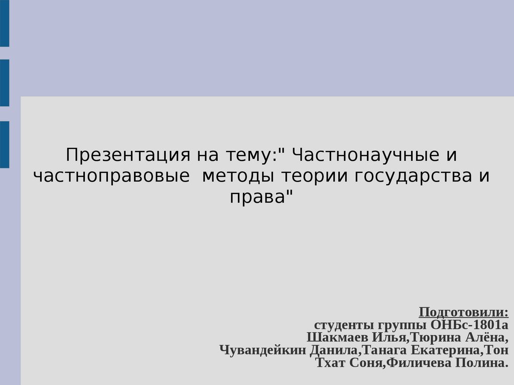 Презентация на тему:" Частнонаучные ичастноправовые методы теории государства и
