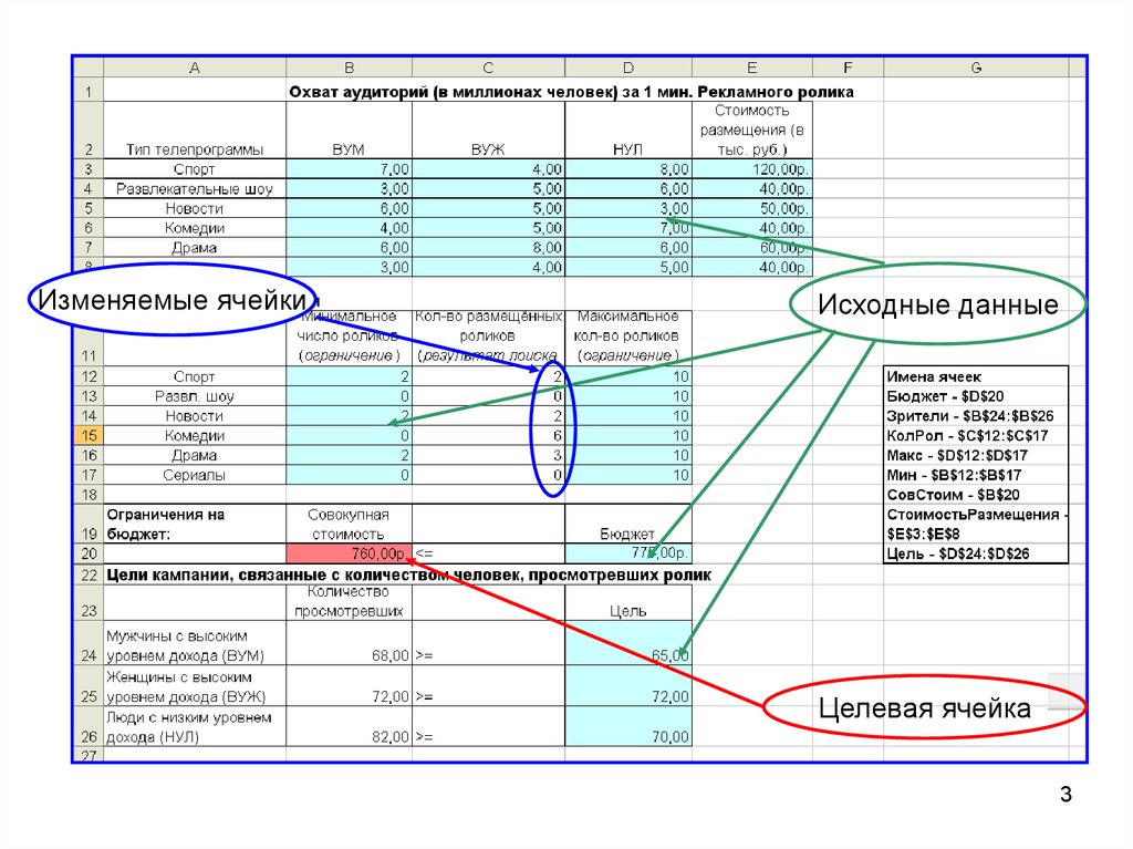 Общие свойства задач, для решения которых можновоспользоваться надстройкой Поиск решения: