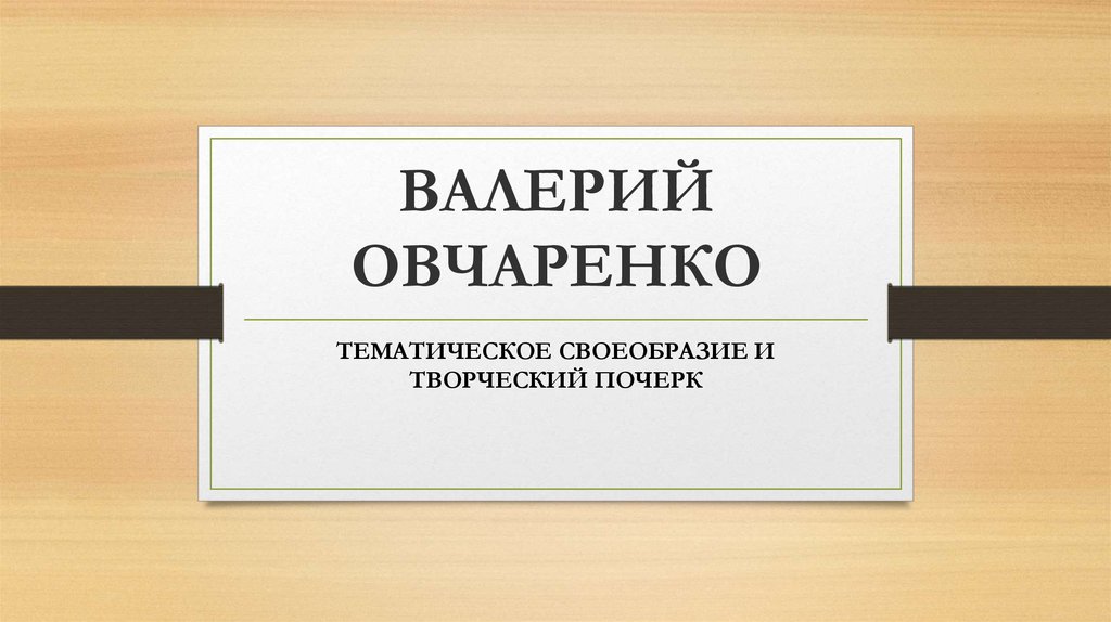 Валерий Овчаренко. Тематическое своеобразие и творческий почерк
