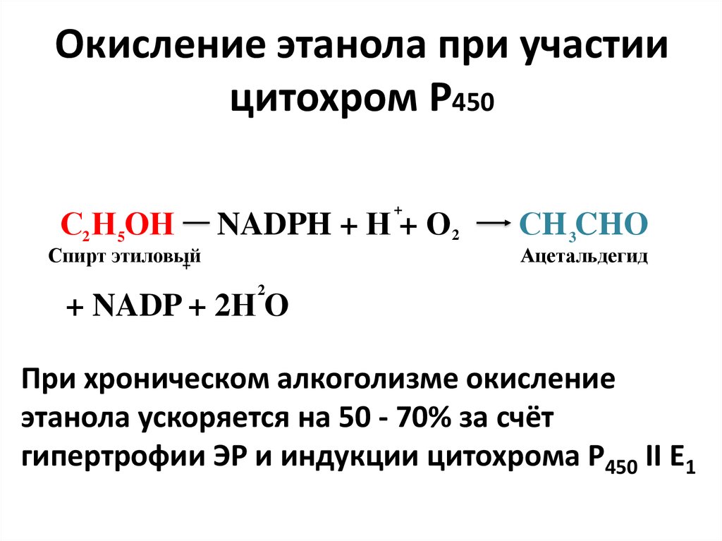 Окисление этанола при участиицитохром Р450