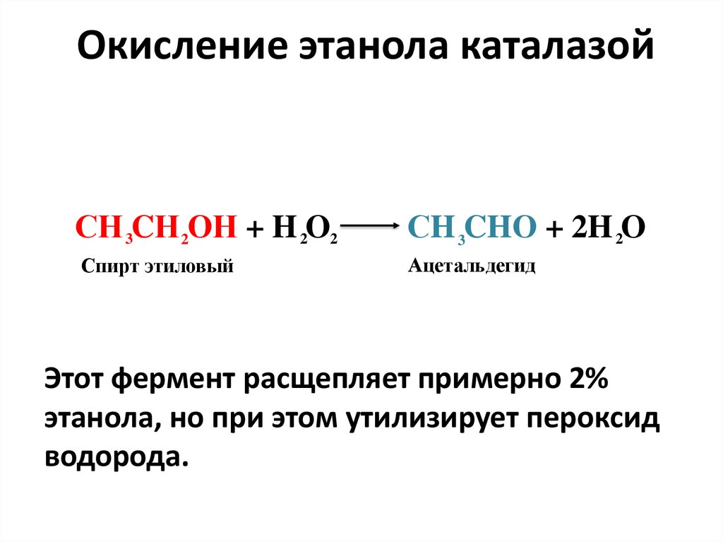 Окисление этанола каталазойСН 3CН 2ОН + H 2O2