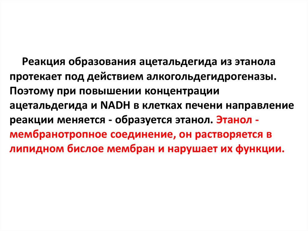 ацетальдегида и NADH в клетках печени направление