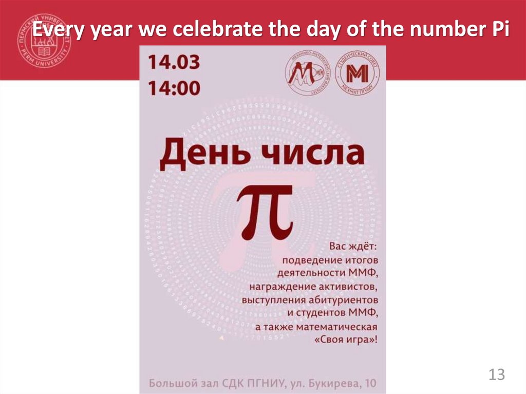 Every year we celebrate the day of the number Pi13