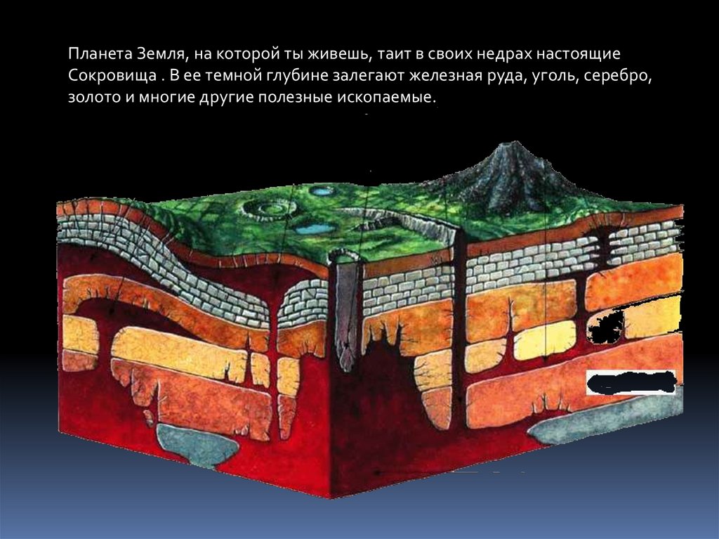 Планета Земля, на которой ты живешь, таит в своих недрах настоящиеСокровища . В ее темной глубине залегают железная руда, уголь, серебро,