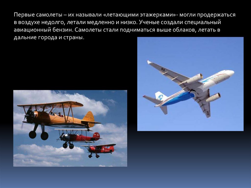 Первые самолеты – их называли «летающими этажерками»- могли продержатьсяв воздухе недолго, летали медленно и низко. Ученые создали специальный