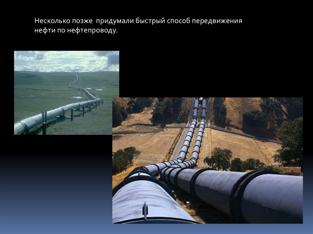 Несколько позже придумали быстрый способ передвижениянефти по нефтепроводу.