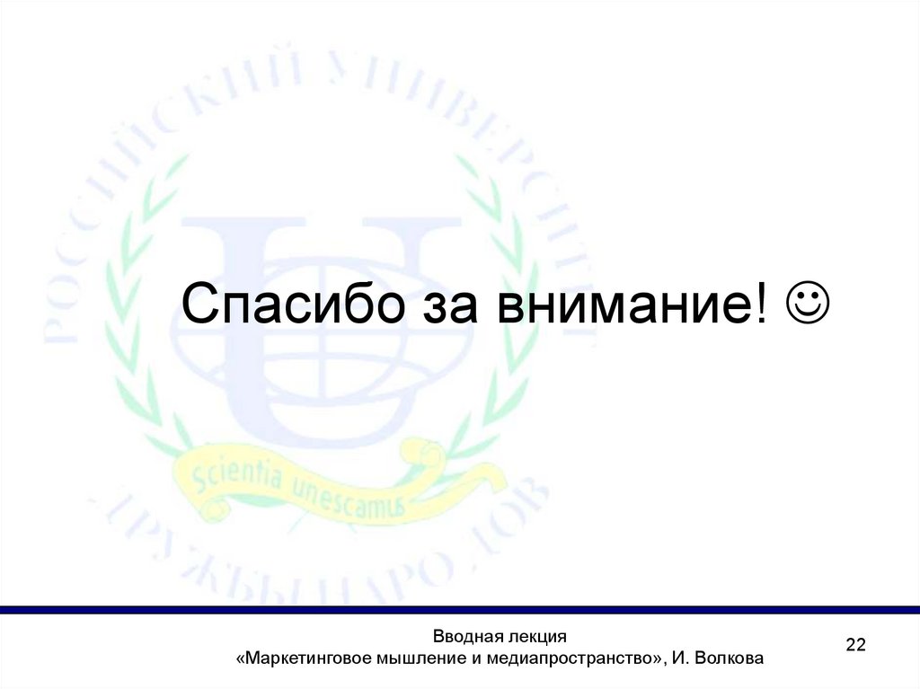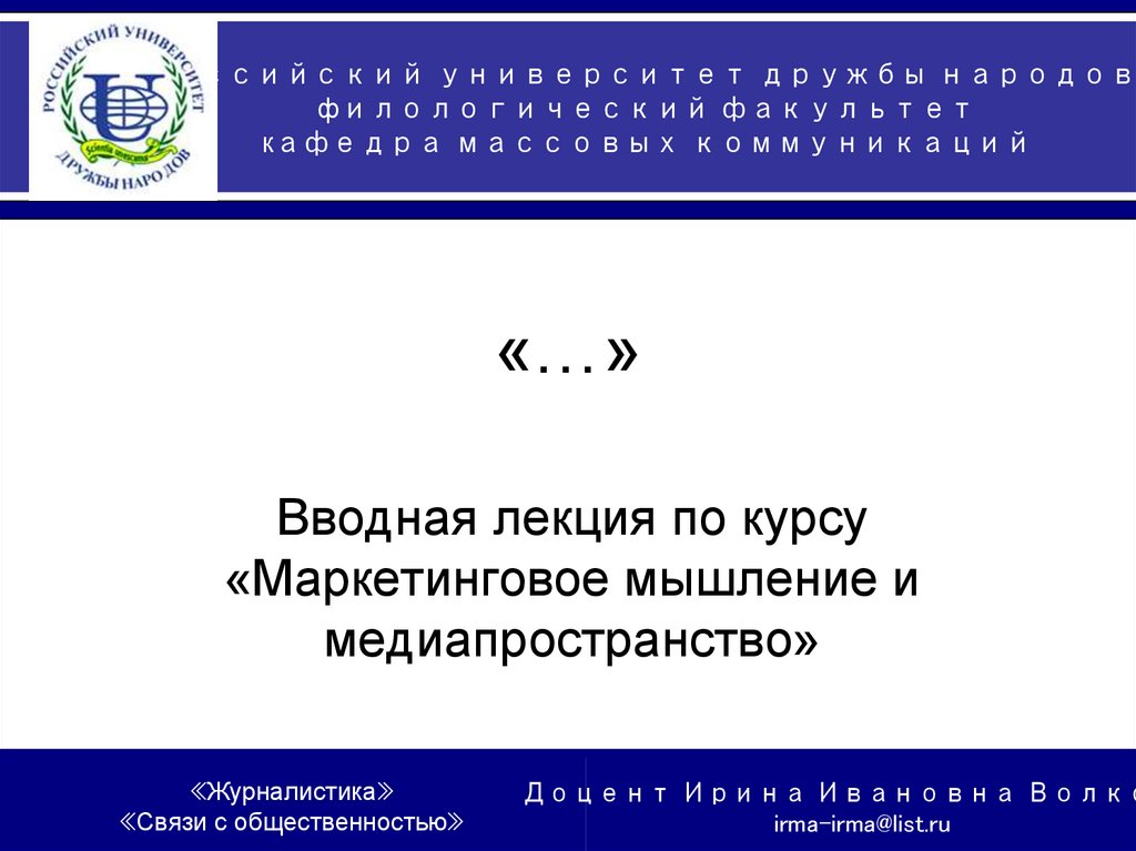 Вводная лекция«Маркетинговое мышление и медиапространство», И. Волкова