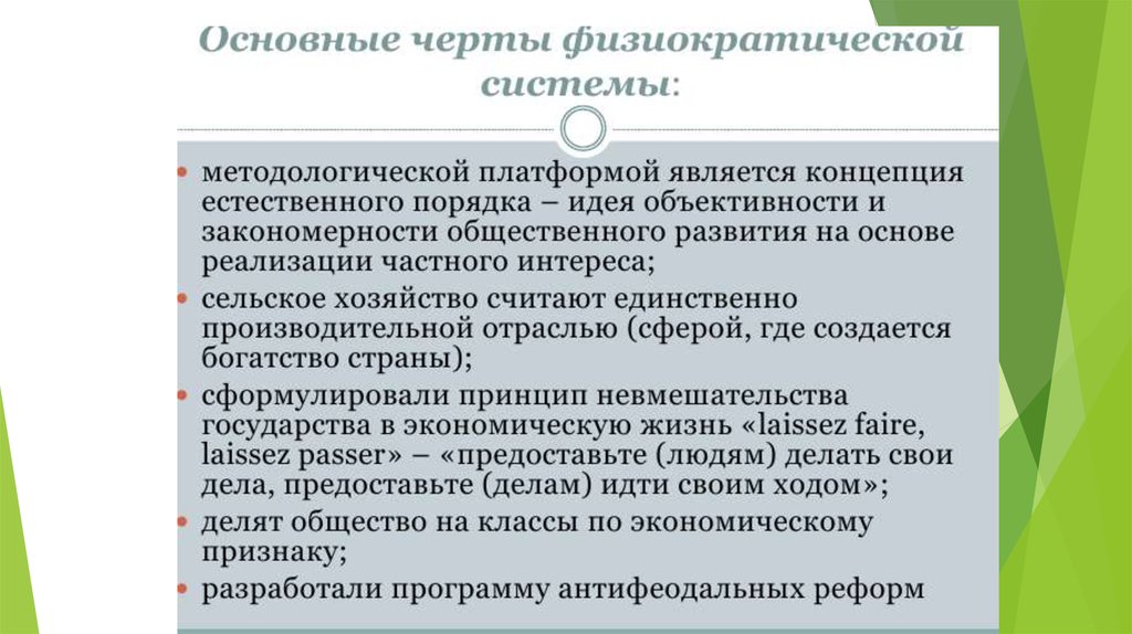 основам физиократического учения и принципам экономического
