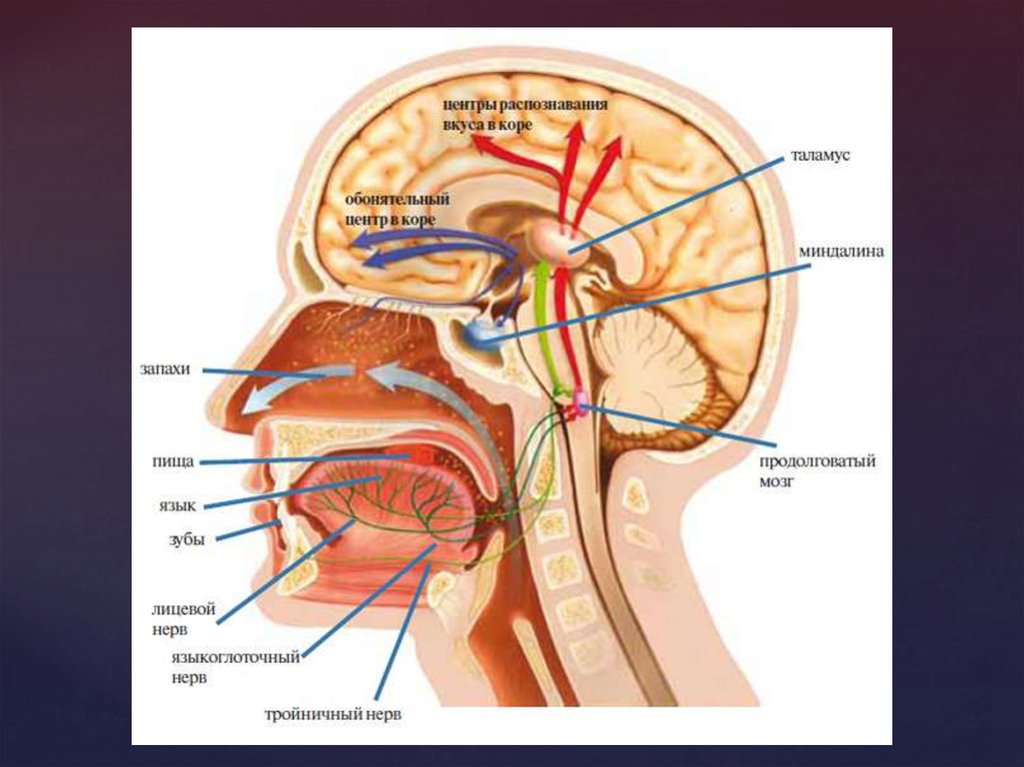 Миндалина образует также обширные связи с обонятельнойлуковицей. Благодаря этим связям обоняние у животных участвует в